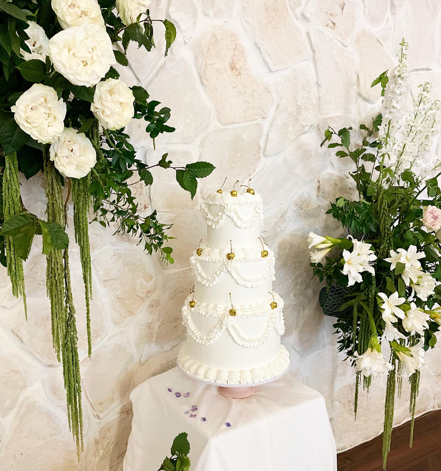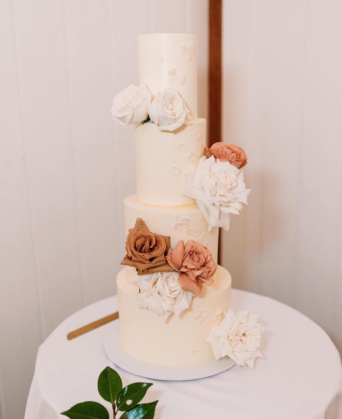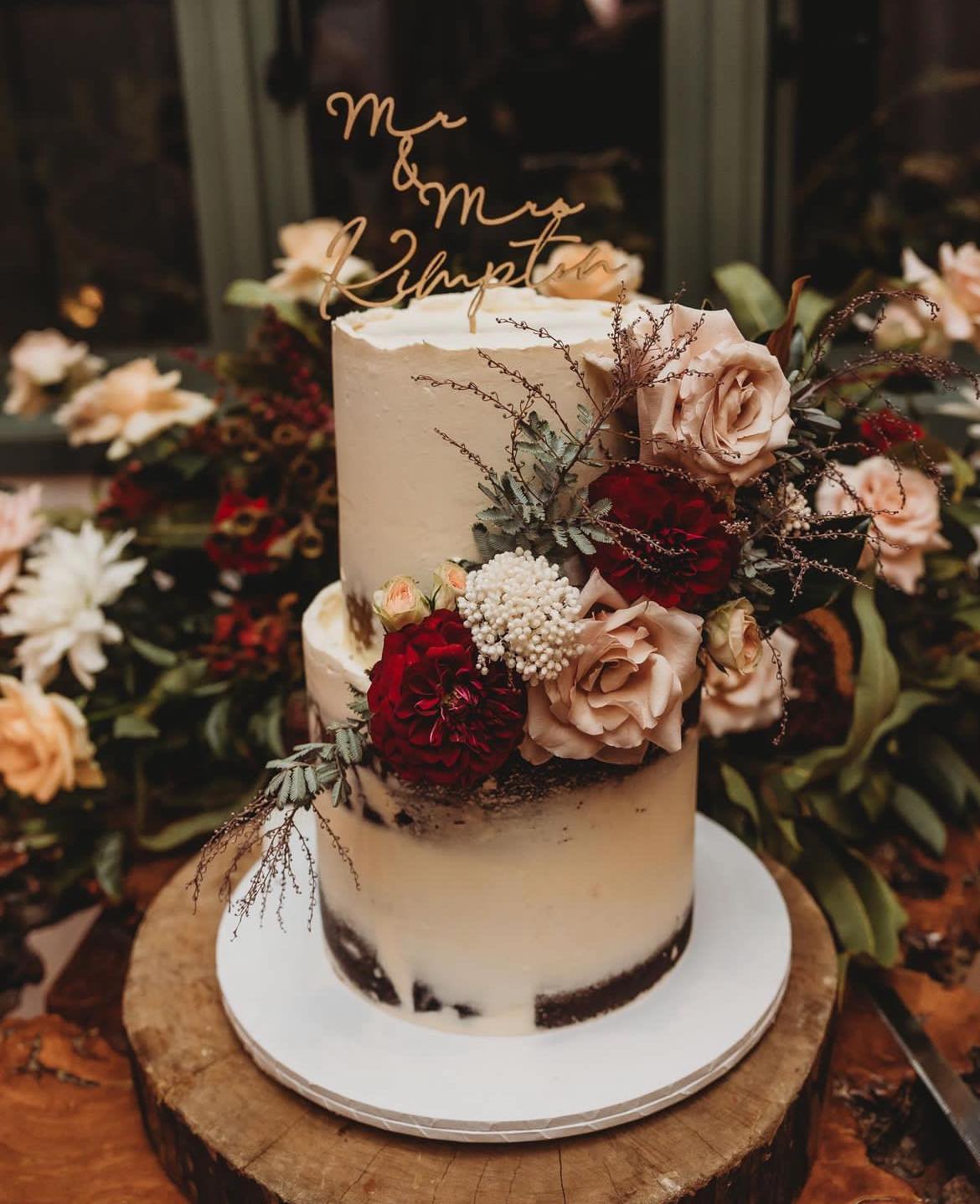 You get to choose just about everything including cake and buttercream flavours for all tiers and slices, external buttercream finish and colour, floral types, colours and placement, and topper design with your own wording, fonts, and placement. You can add things like gold leaf embellishing, buttercream detailing, and other design elements. There are only a handful of design additions that will incur an additional fee. Let us know what you’re after and we will show you how it can fit into one of our packages.